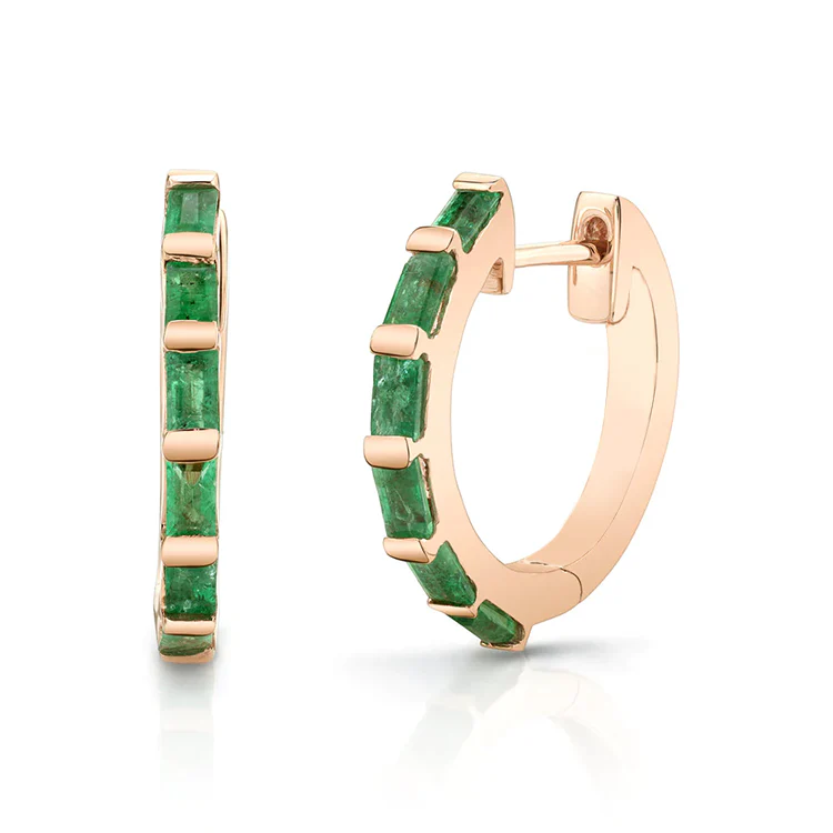 Emerald Baguette Huggies