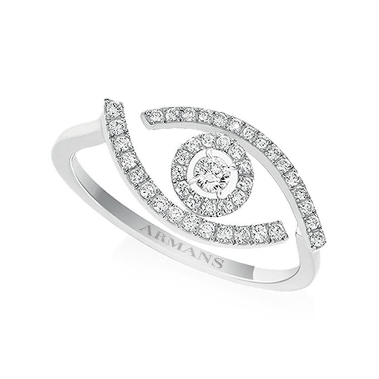 - Evil eye diamond ring with round brilliant cut pavĂ© diamonds.Â