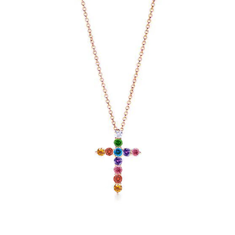 Rainbow Diamond Cross Necklace